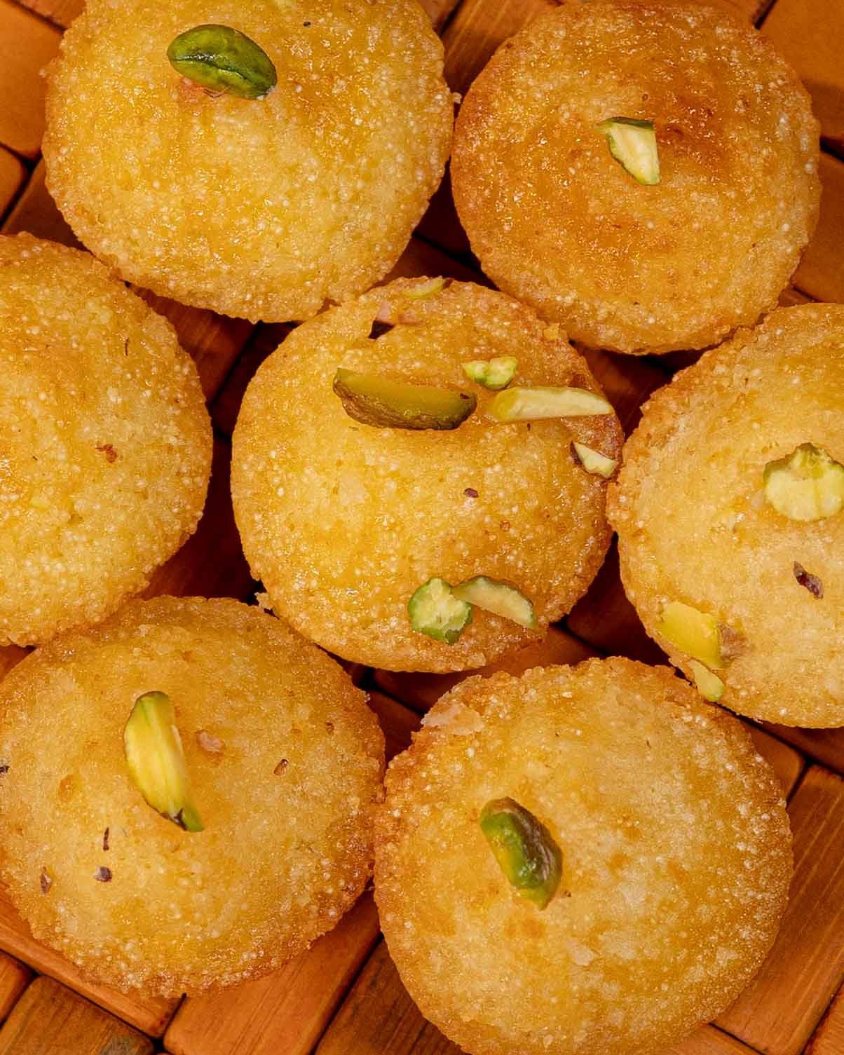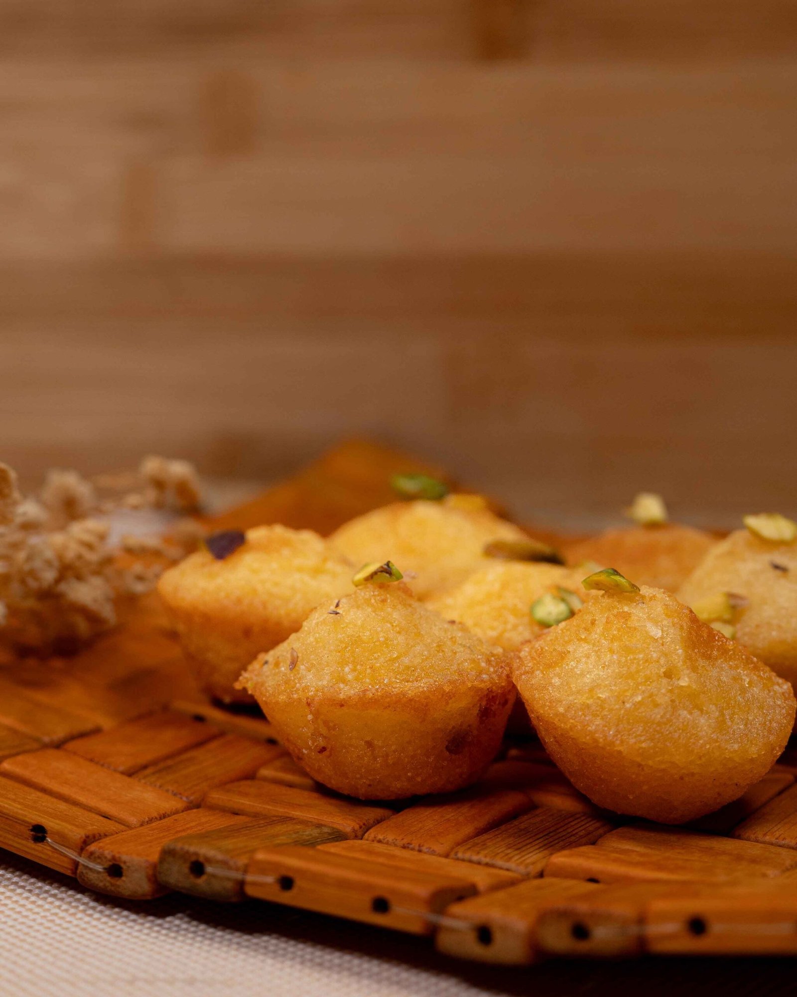 This classic semolina cake is infused with rosewater syrup and topped with toasted nuts. It’s a moist, dense, and golden delight that brings the authentic taste of the Middle East to your doorstep.
