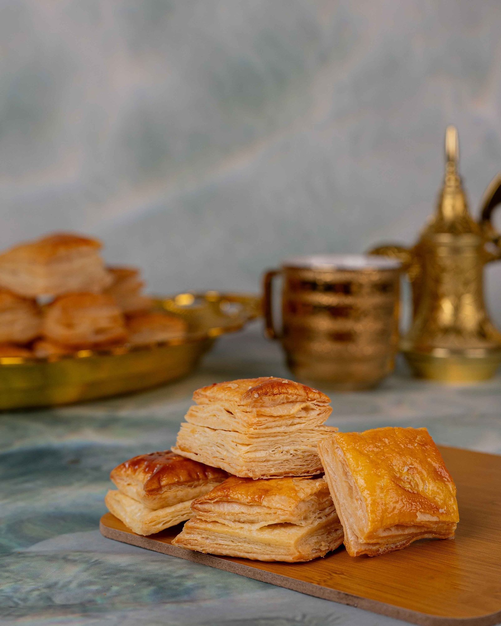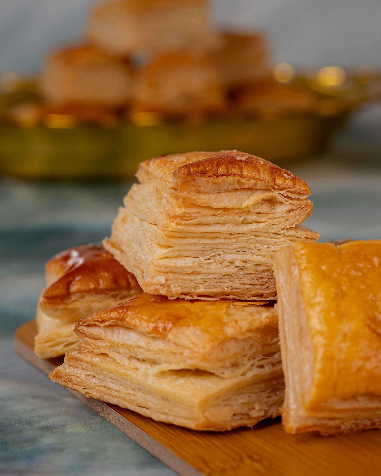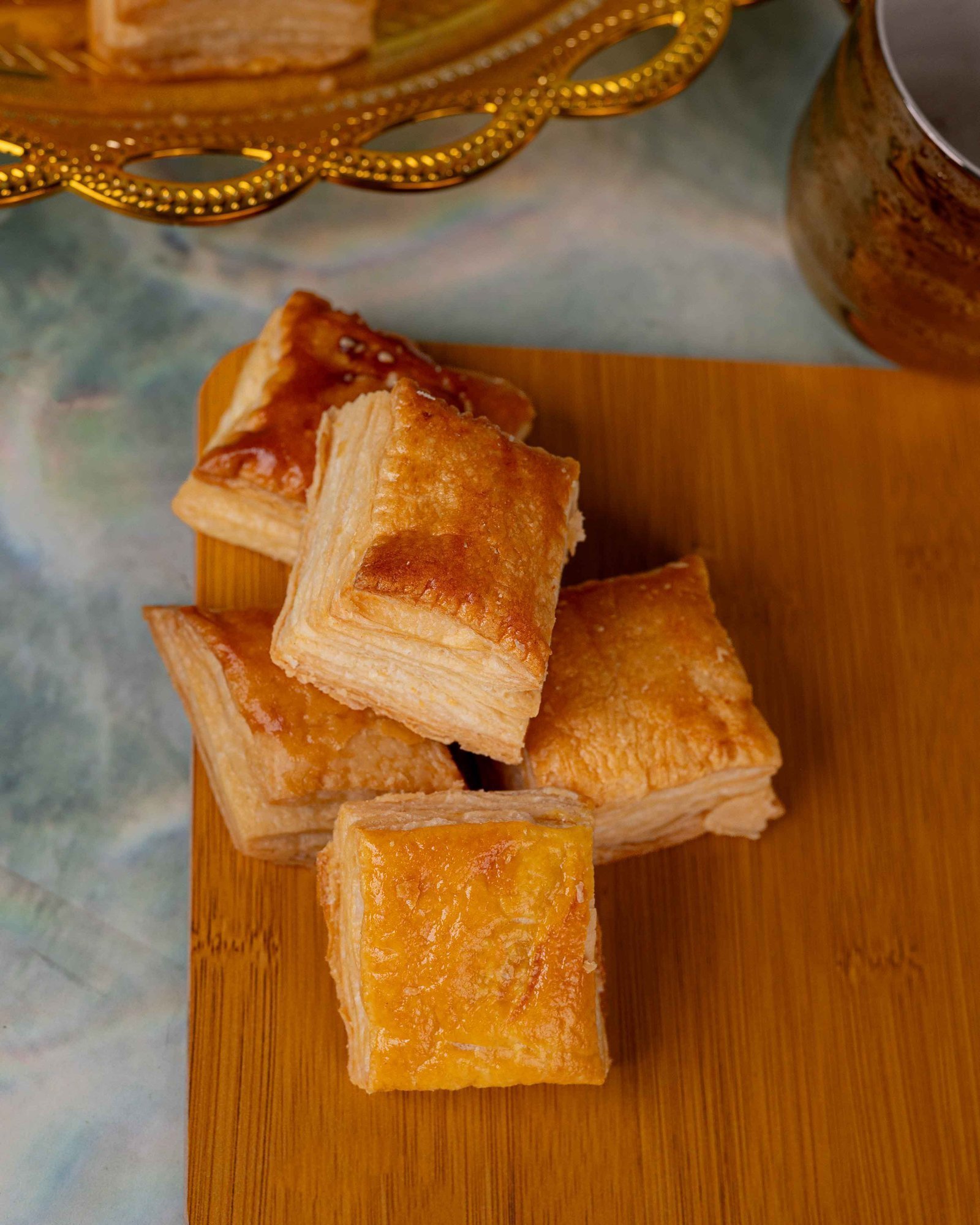 Indulge in Kolachi Bakers’ Cheeni Stick Khara. These golden, flaky puff pastry batons are dusted with crystalline sugar, offering a delicate crunch and a nostalgic blend of sweet and savory flavors. The ultimate companion for your evening tea.