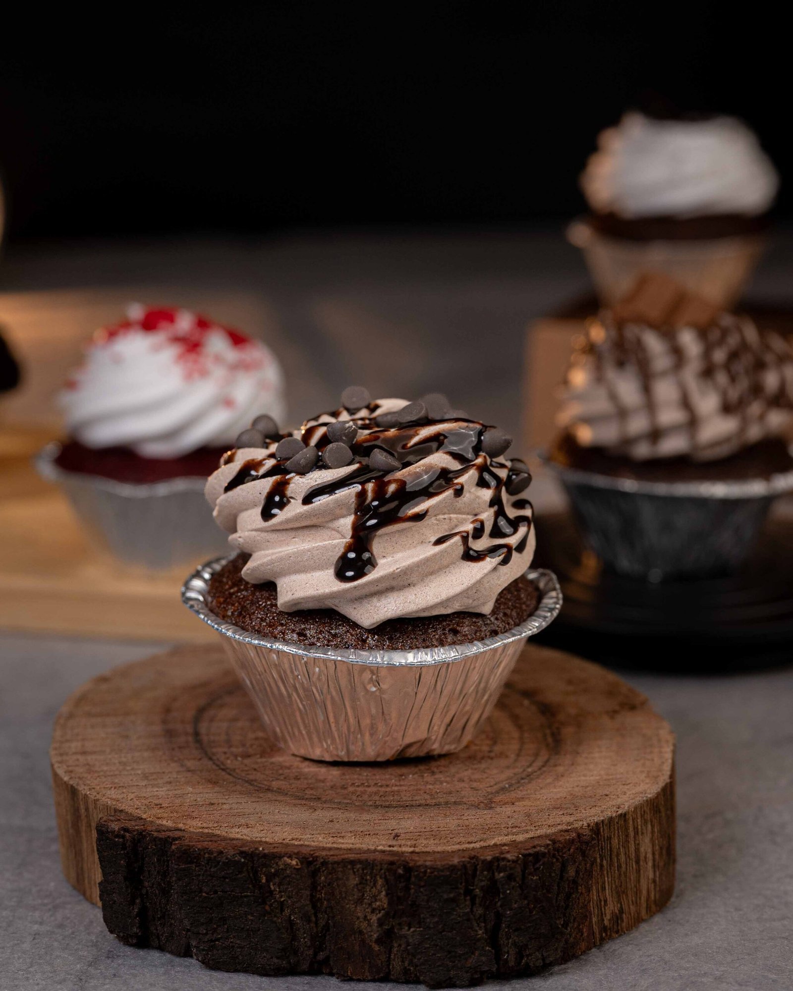 Each piece features a delicate, buttery sponge topped with a swirl of handcrafted frosting. Whether it’s classic vanilla or rich chocolate, it’s the perfect midday escape.