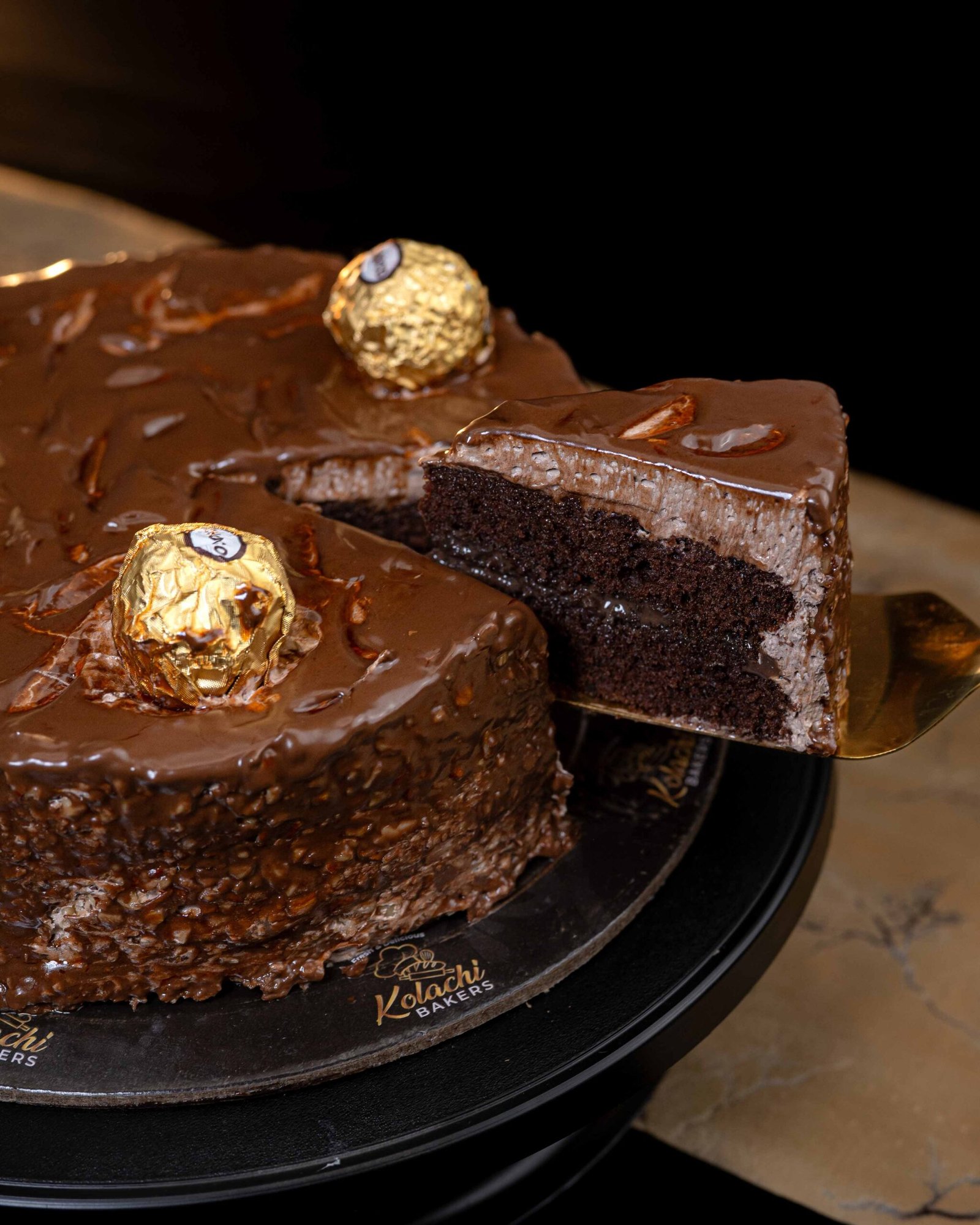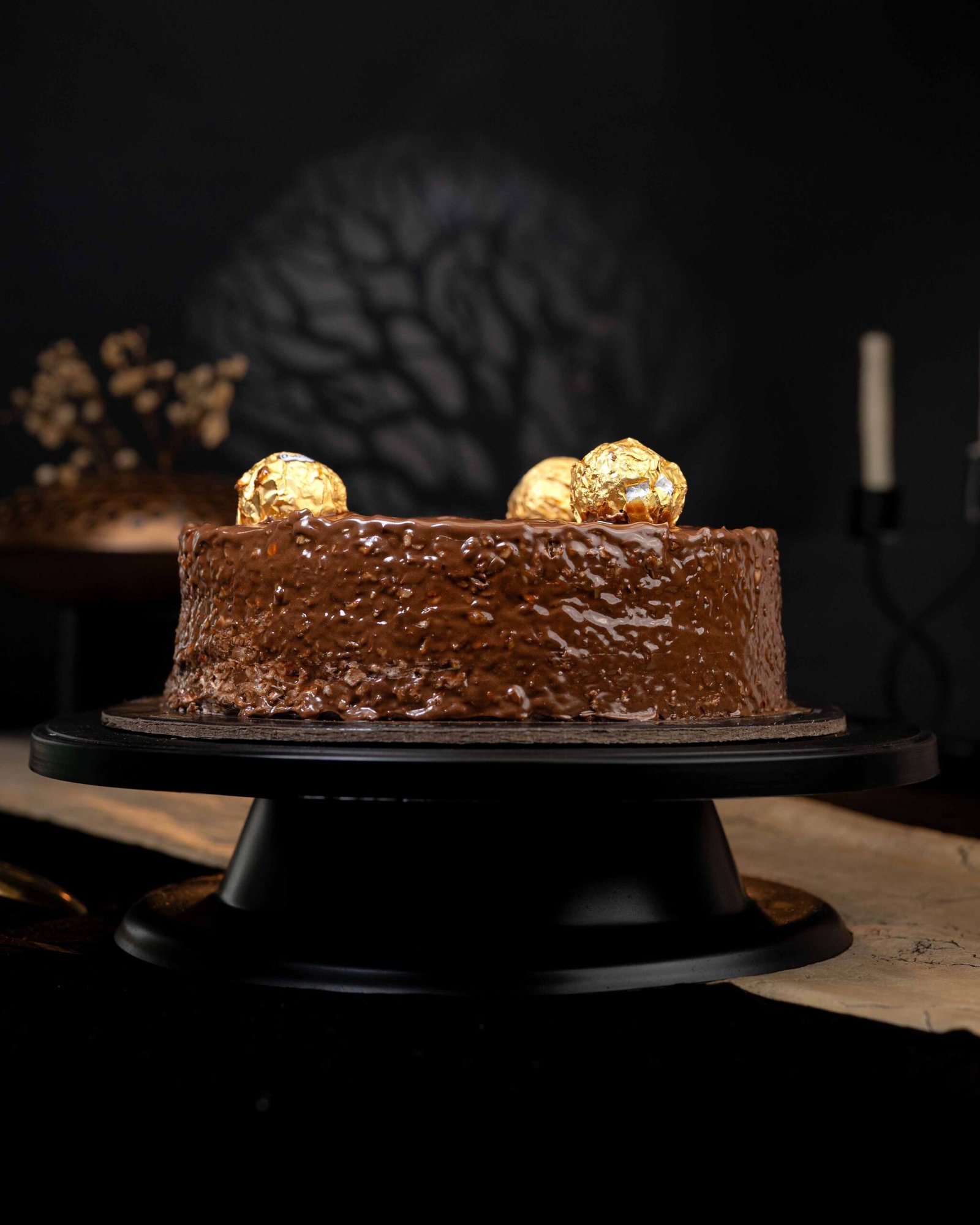 Ferrero Rocher Cake: a decadent blend of rich cocoa, roasted hazelnut crunch, and silky chocolate ganache. Each bite offers a luxurious texture that melts in your mouth—the ultimate celebration of fine Italian flavors.