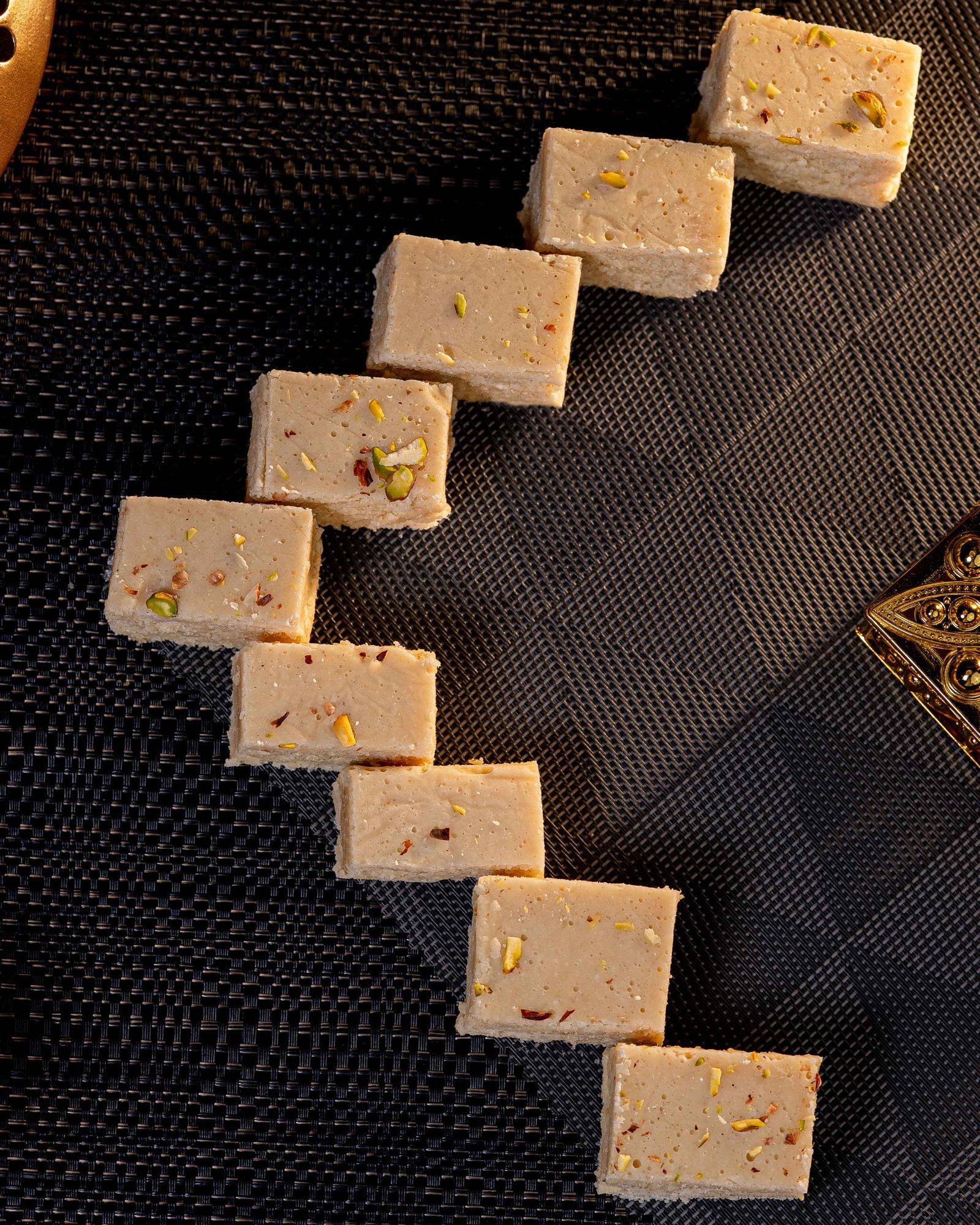 Our artisanal recipe uses pure, thickened milk and delicate cardamom to create a melt-in-your-mouth texture. It’s the perfect blend of tradition and quality in every creamy, grainy bite.