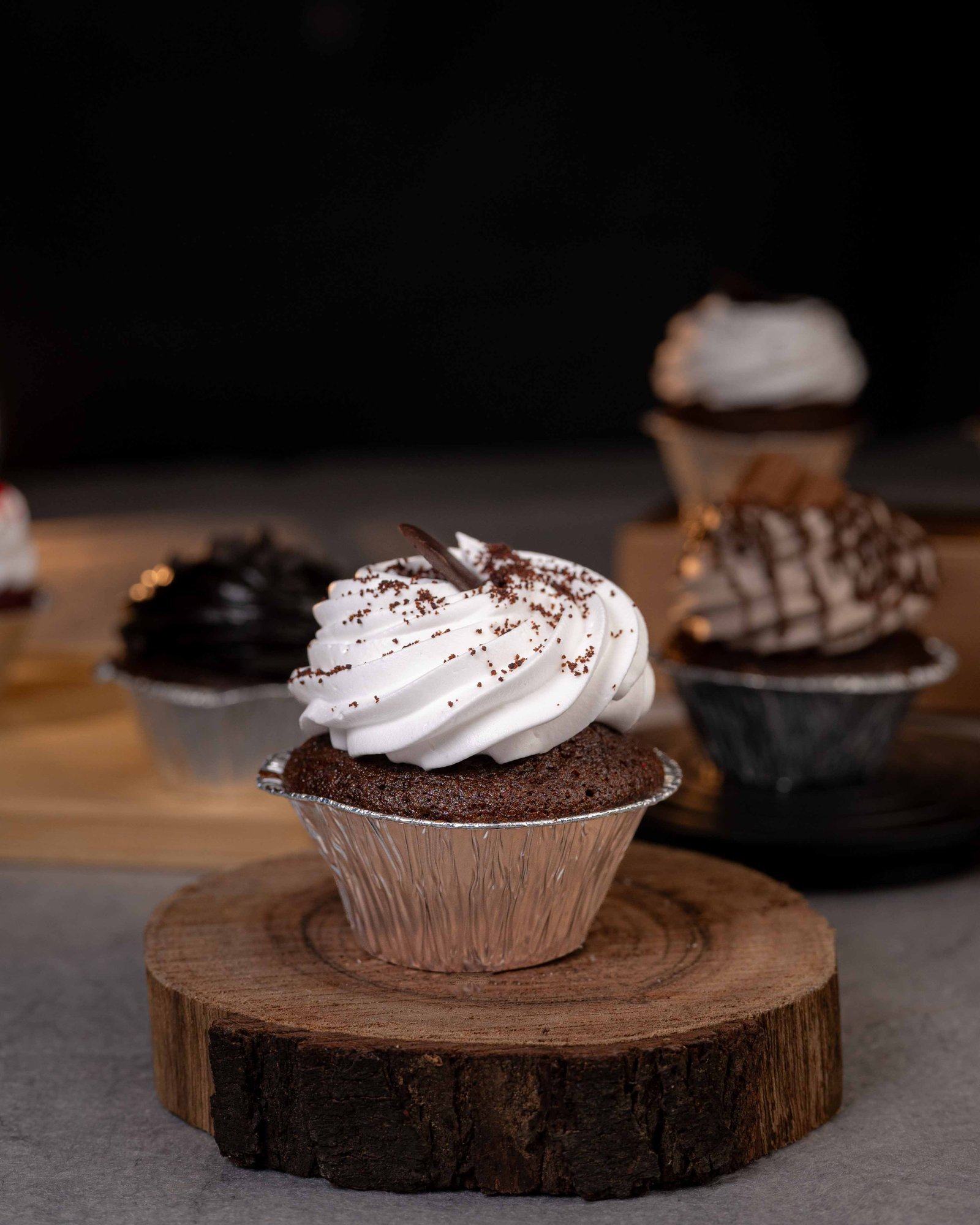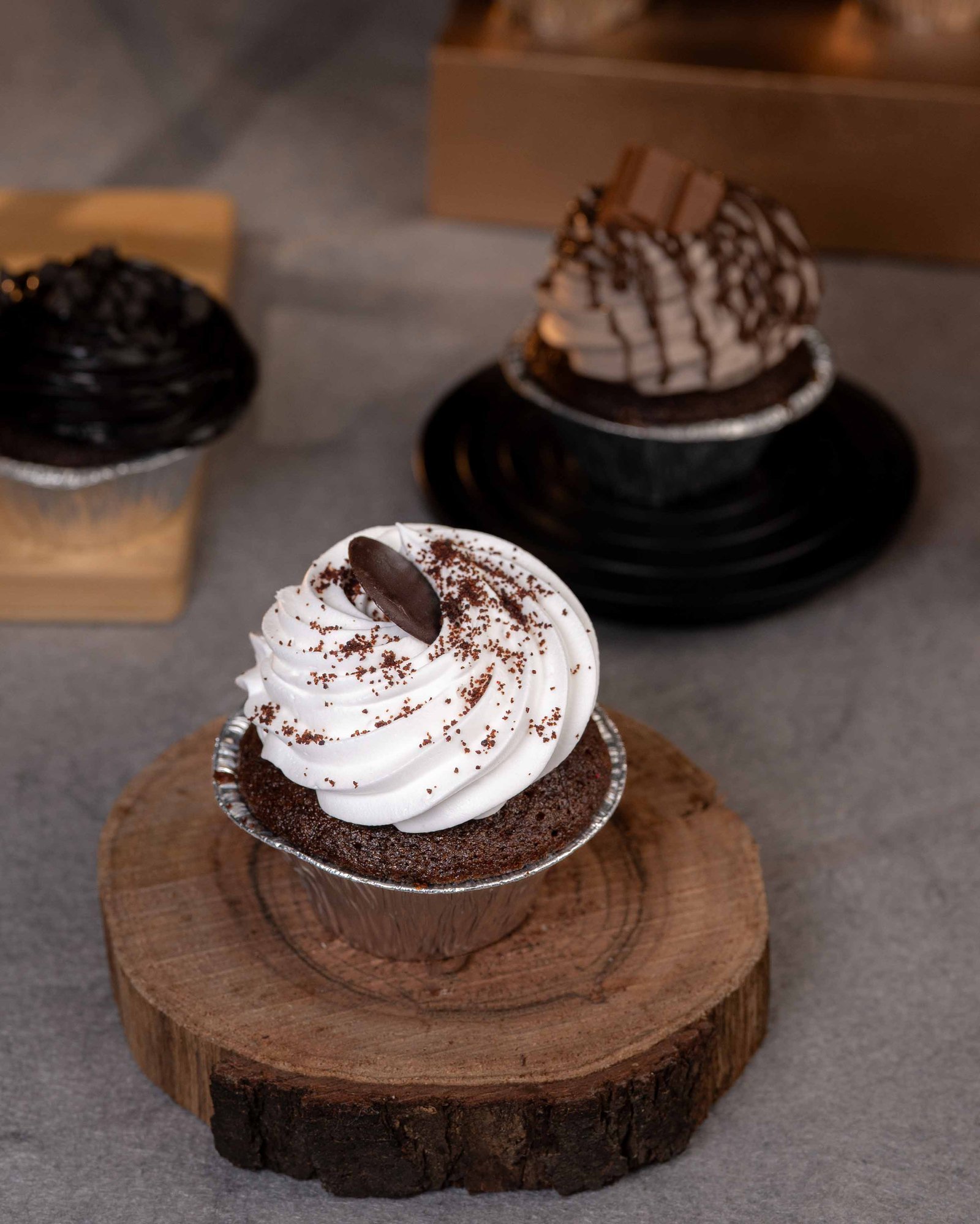 Our Oreo Cupcake features a moist, cocoa-rich sponge topped with a cloud of whipped vanilla frosting and authentic cookie crumbles. It’s a nostalgic, crunchy, and creamy delight in every single bite.